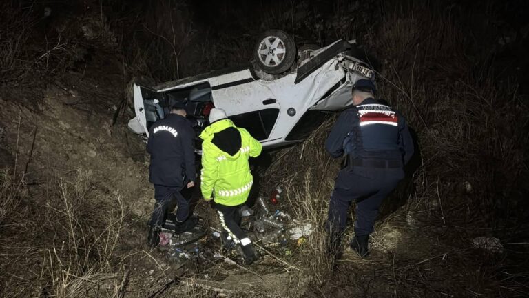 Kütahya'da hendeğe devrilen otomobilde 2 kişi ağır yaralandı.