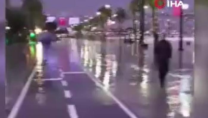 Son uyarıların ardından İstanbul'da fırtına meydana geldi. Büyükçekmece sahilinde yürüyen bir çift, şemsiyelerine yıldırım düştüğü sırada cep telefonlarıyla görüntü kaydediyordu.